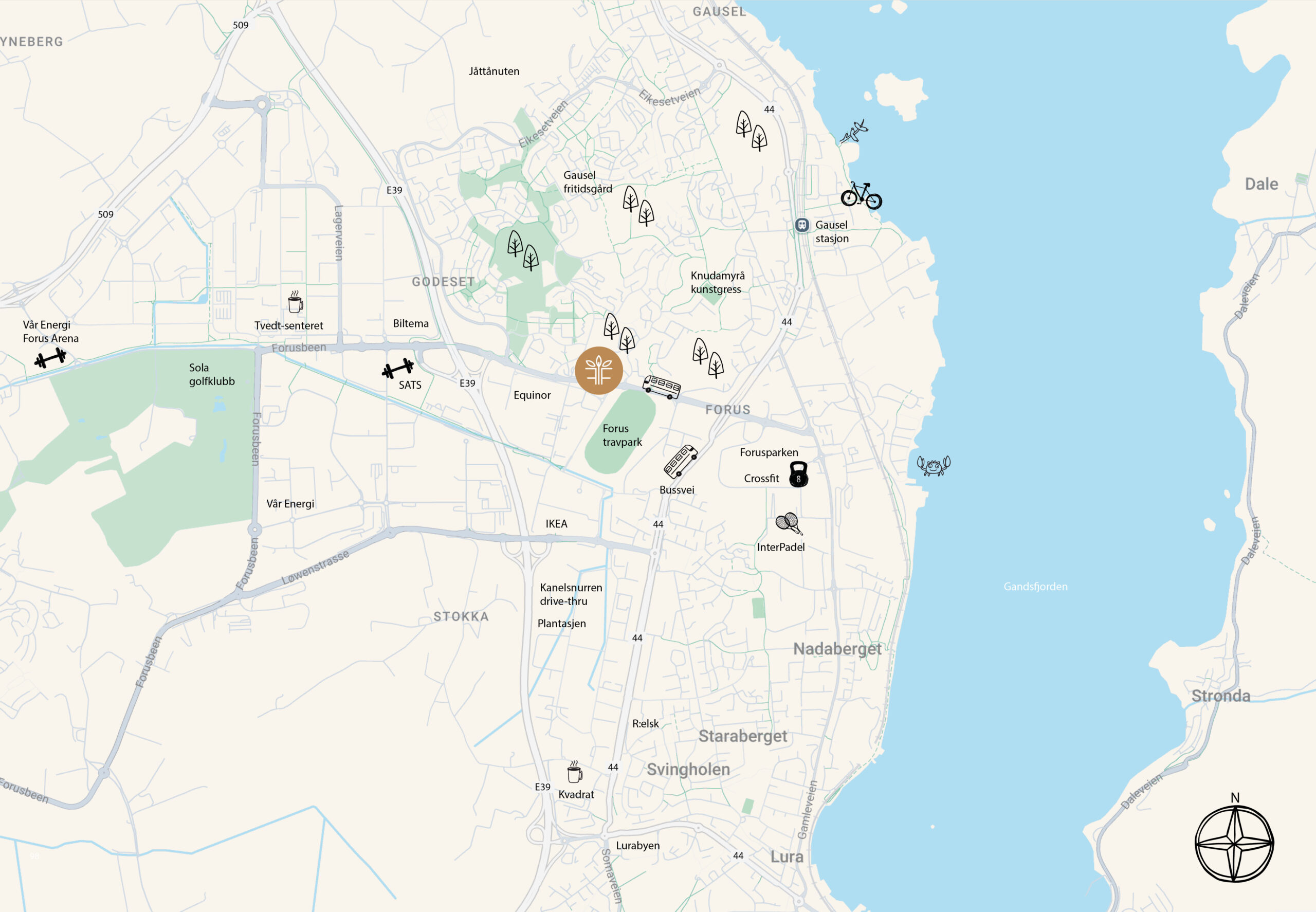 Forus er regionens største næringsområde, strategisk plassert mellom Stavanger, Sandnes og Sola. Her jobber over 40 000 mennesker i mer enn 2 500 bedrifter innen energi, teknologi, handel og tjenesteyting. Området er omgitt av etablert boligbebyggelse, grønne friområder og Gandsfjorden, som gir en sjelden balanse mellom urbant liv og naturnære omgivelser.